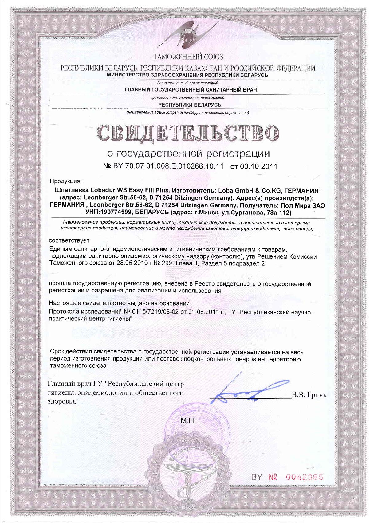 Расход LOBA EasyFil 1л